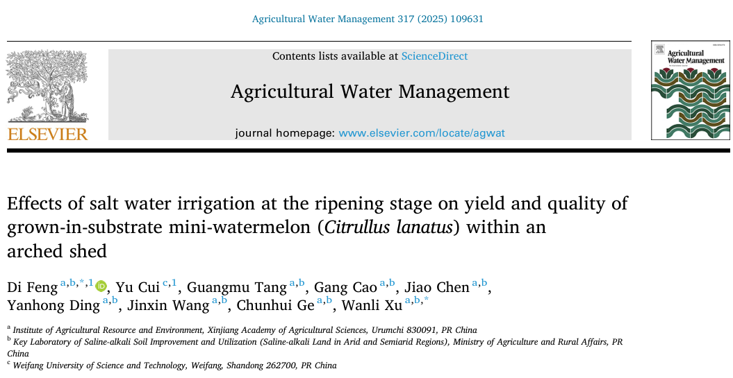 自治区农科院资源与环境研究所土壤质量与产能提升创新团队在咸水资源优化利用方面取得新进展
