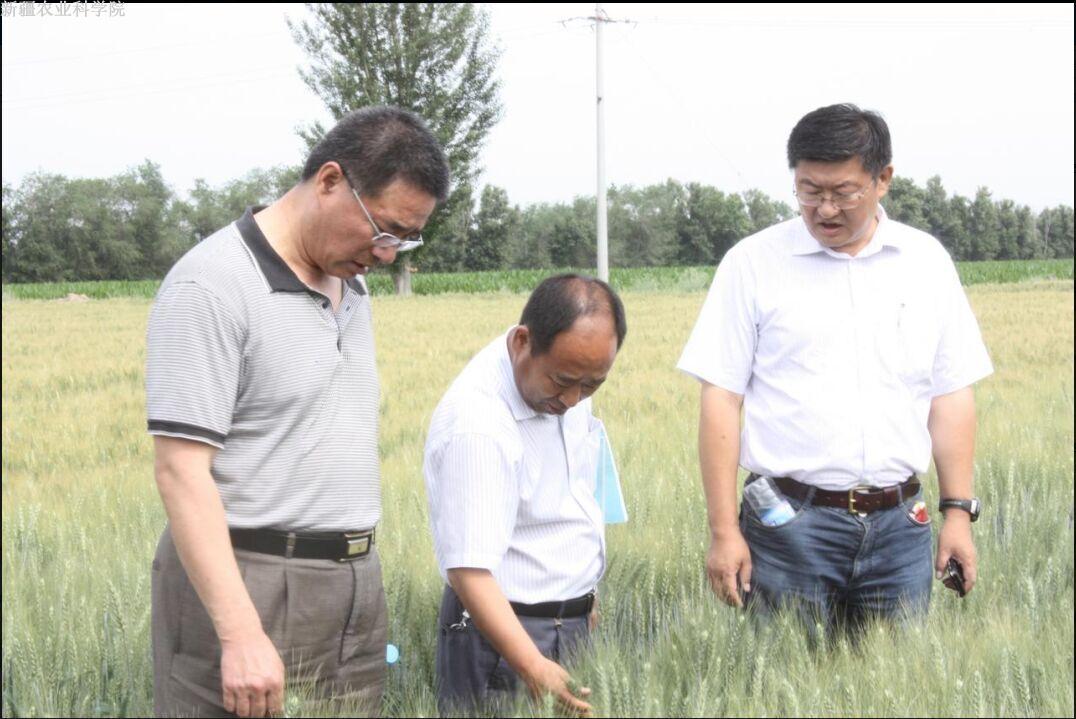 6月26日,我院党委书记朱政、科管处处长李进、粮作所所长吴新元、核生所副所长王奉斌一行前往农六师军户农场核生所小麦育种基地、安宁渠综合试验场就小麦育种、玉米抗旱试验进展情况进行检查指导。 朱政书记一行到试...
