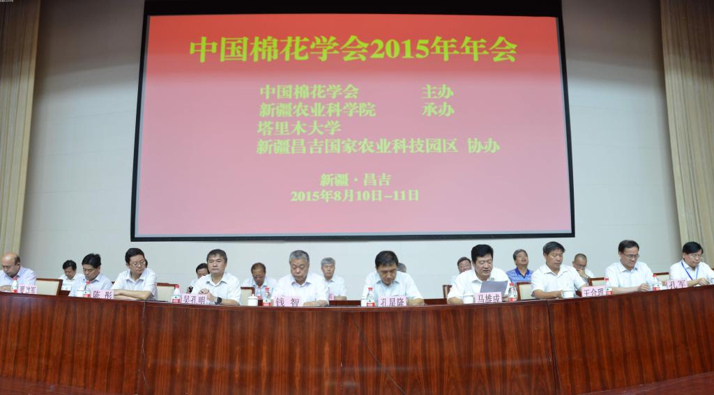 2015年8月10日-11日中国棉花学会2015年年会在新疆昌吉市顺利召开。自治区副主席钱智、新疆生产建设兵团副司令员孔星隆出席。来自全国各省市区的700多位棉花科技工作者,围绕棉花领域重点、难点、热点问题进行学术交流...