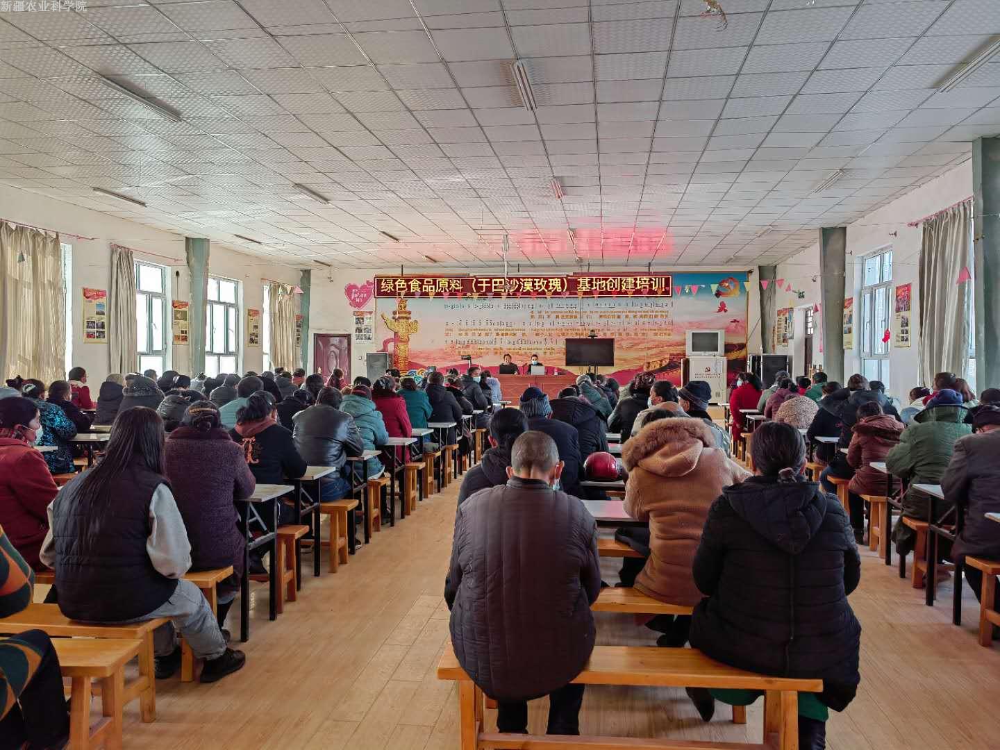 粮作所在于田县开展“绿色食品原料(于田沙漠玫瑰)基地创建”培训会