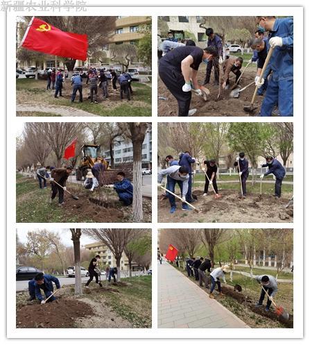 4月19日,院机关第五党支部组织20余名党员和青年志愿者,开展“党旗映天山——种下一棵树 留下一片绿”义务植树主题党日活动,为美丽农科大院建设再添新绿。 植树现场党旗飘扬,党员和青年志愿者们撸起袖子,挖坑铲土...