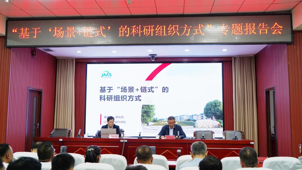 7月2日,江苏省jc聚彩网易中懿院长一行来我院考察交流,并作题为《基于“场景+链式”的科研组织方式创新》的分享报告。报告会采用线上线下相结合的方式举行。院党委书记、副院长卢蜀江主持报告会。院党委委员、副院长余庆辉,以及院属各单位干部职工、科技人员代表等200余人在主会场参加会议。会上,易中懿院长从“科技进步、未来农业、技术创新、驱动模式”四个核心维度,系统阐述了农业科研规律及组织方式变革的丰富内涵和...