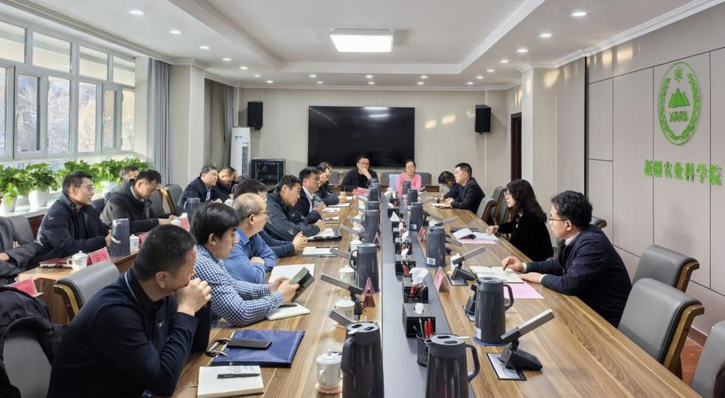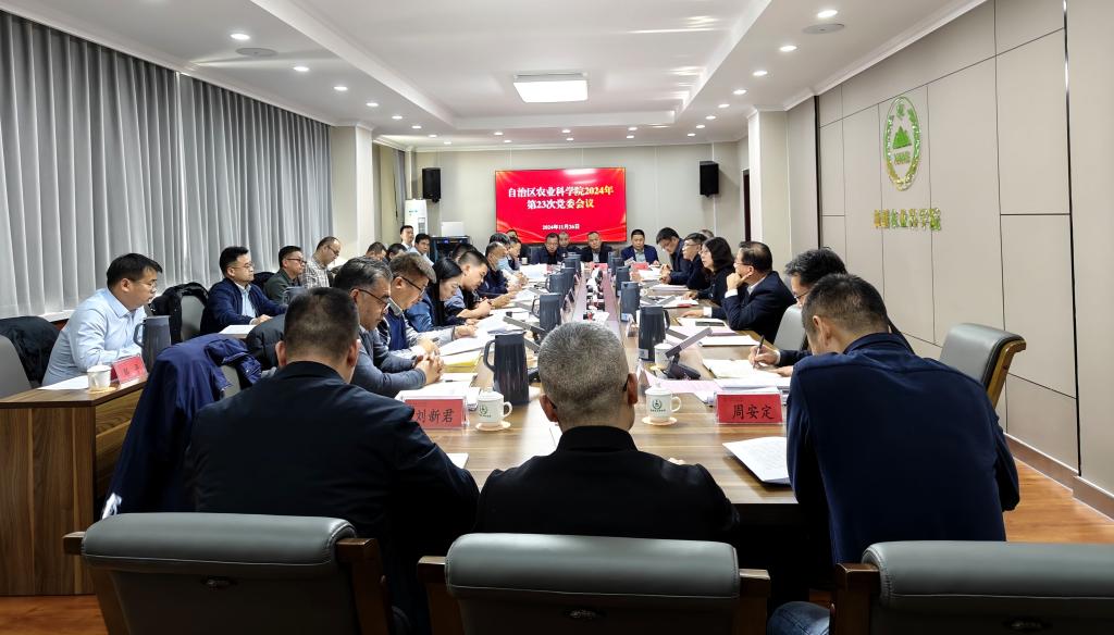 11月26日,我院召开2024年第23次党委会议,深入学习习近平总书记近期重要讲话重要指示批示精神,贯彻落实自治区科技创新大会部署要求,院党委书记、副院长马缨主持会议,院党委副书记、院长余庆辉,院党委副书记彭守创,院党委委员、副院长戴俊生,以及自治区党委第十一巡视组、自治区纪委监委驻农业农村厅纪检监察组、院属各单位负责同志参加会议。会议强调,要持续扩大高水平开放合作,深化与“一带一路”沿线国家特别是中亚...