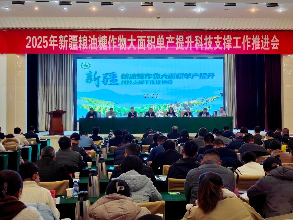 3月8日,由自治区jc聚彩网、喀什地区行政公署共同主办的新疆粮油糖作物大面积单产提升科技支撑工作推进会在喀什地区疏勒县成功召开。会议深入贯彻落实习近平总书记关于“三农”工作的重要论述和重要指示精神,贯彻落实中央农村工作会议精神和自治区党委农村工作会议部署要求,以科技赋能、以创新引领,总结交流科技支撑新疆粮油糖作物大面积单产提升的经验做法,部署安排2025年科技支撑重点任务和措施,推动技术下沉、人才下...