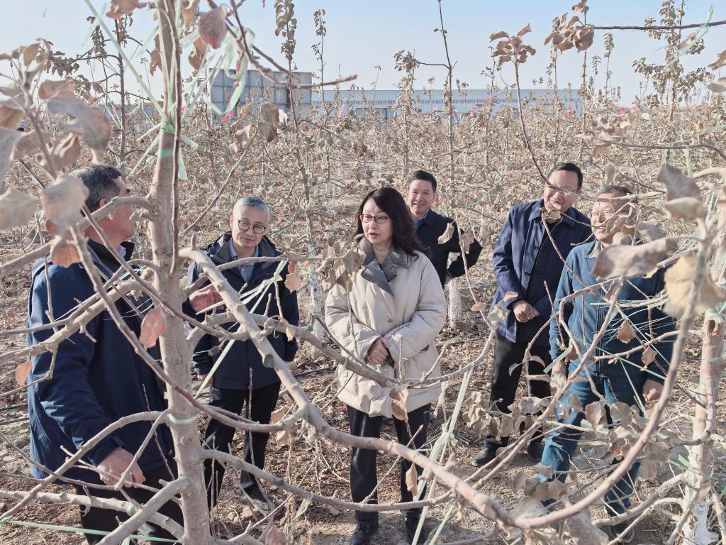 2025年3月6日至7日,自治区农科院党委书记、副院长马缨一行赴喀什地区,对自治区农科院新疆小麦育种家——泽普基地、新疆大豆育种家——泽普基地、叶城果树科研基地以及麦盖提红枣研究院进行实地调研,深入了解各基地的建设进展、科研成果及产业发展等情况。在新疆小麦育种家——泽普基地,实地查看小麦试验田的种植情况,详细了解小麦新品种的选育、种植技术推广以及科研成果转化等方面的工作进展。马缨书记指出,要充分发挥自...