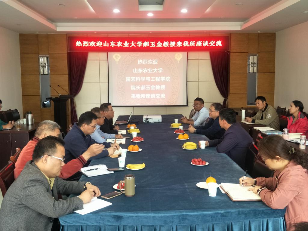 5月10日,山东农业大学“长江学者”特聘教授、园艺科学与工程学院院长郝玉金教授一行3人来访我院园艺所。 座谈会上,郝玉金教授介绍了山东农业大学园艺学与工程学院的情况,分析了果树分子生物学的前沿技术与发展方向...
