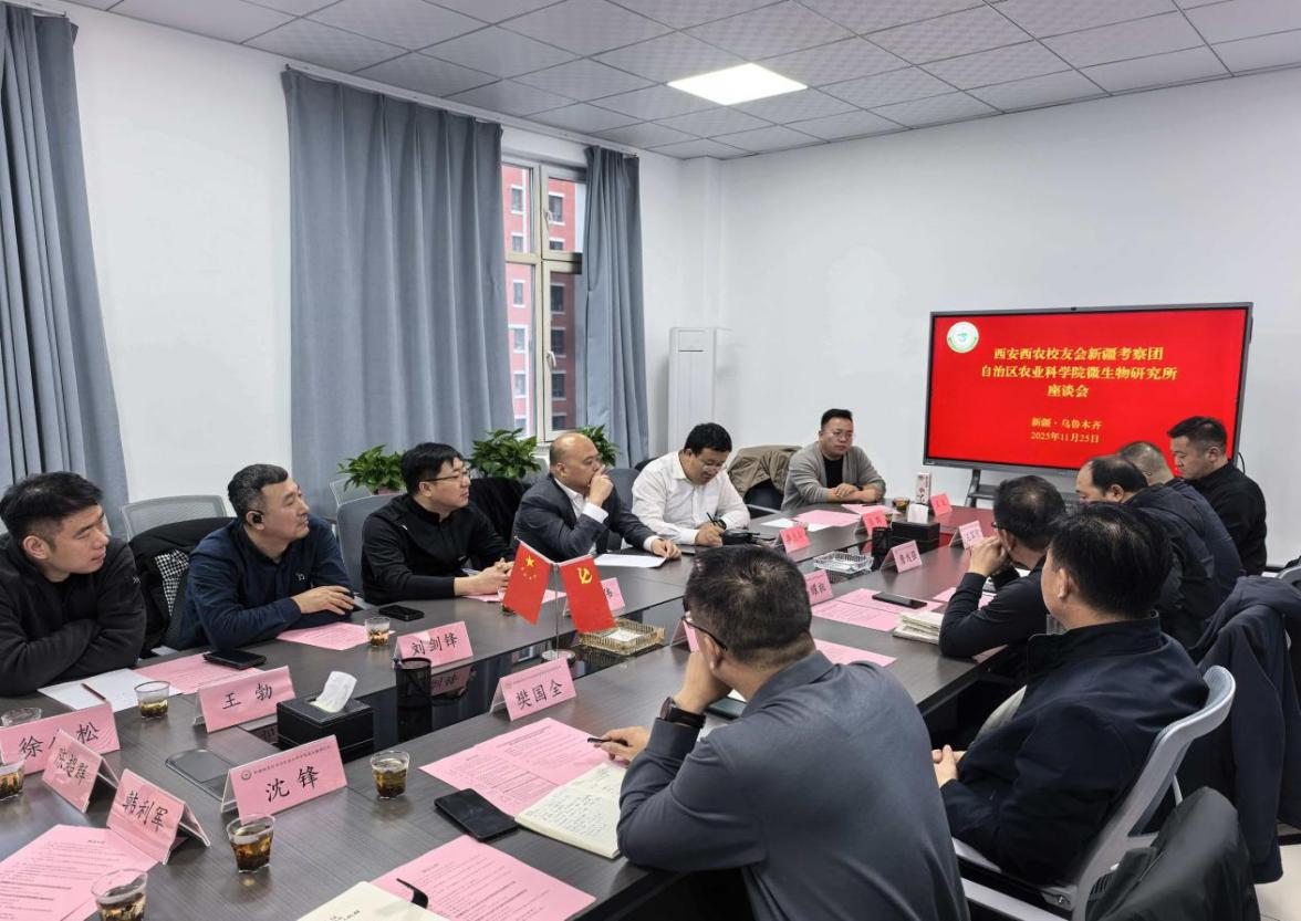 11月25日下午,西安西农校友会新疆考察团一行7人到自治区农科院微生物所座谈交流。自治区农科院微生物研究所党支部书记郭威主持会议,微生物所所长冯耀祖、副所长詹发强,院科技成果转化部副部长樊国全、新疆校友会会长韩利军、兵团环保设计院院长陈超群、院成果孵化与产业合作中心主任王军帅及微生物所新引进西农博士代表共17人参加会议。座谈会上,冯耀祖详细介绍了微生物所的基本情况,包括历史沿革、组织架构、重点研究领域...