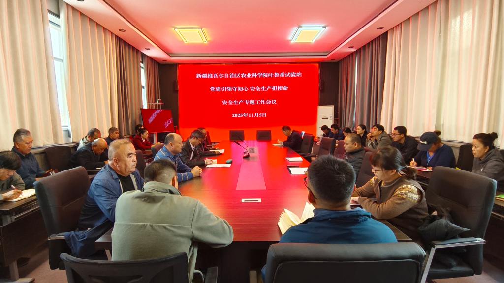 为深入推进“党建+安全”深度融合,压紧压实安全生产责任,全面提升科研服务保障水平,11月5日,自治区农科院吐鲁番试验站召开安全生产专题会。站领导班子、各部门负责人、安全员及全体党员、职工代表参会。会议首先传达了院党组关于安全生产工作的最新部署,强调党的建设是抓好安全生产的根本保障,要求全体人员提高政治站位、保持清醒头脑,深刻认识党建引领安全生产的极端重要性和现实紧迫性。随后,相关负责人通报试验站近...