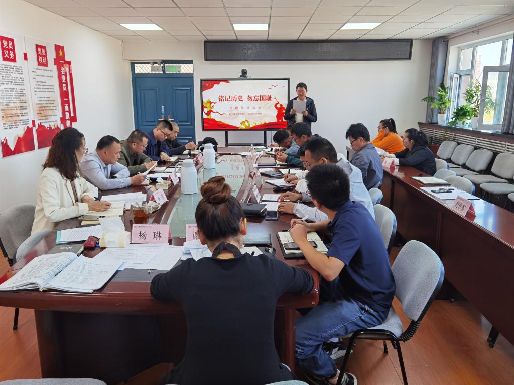 全体党员集中学习了习近平在纪念中国人民抗日战争暨世界反法西斯战争胜利75周年座谈会上的讲话以及纪念中国人民抗日战争暨世界反法西斯战争胜利79周年座谈会精神;通过视频形式共同回顾十四年浴血抗战史,勿忘国耻,警钟长鸣。1名党员同志以“铭记历史缅怀英烈 崇尚英雄争做先锋”为题讲微党课,2名党员同志分别结合物业服务工作和财务工作交流发言。