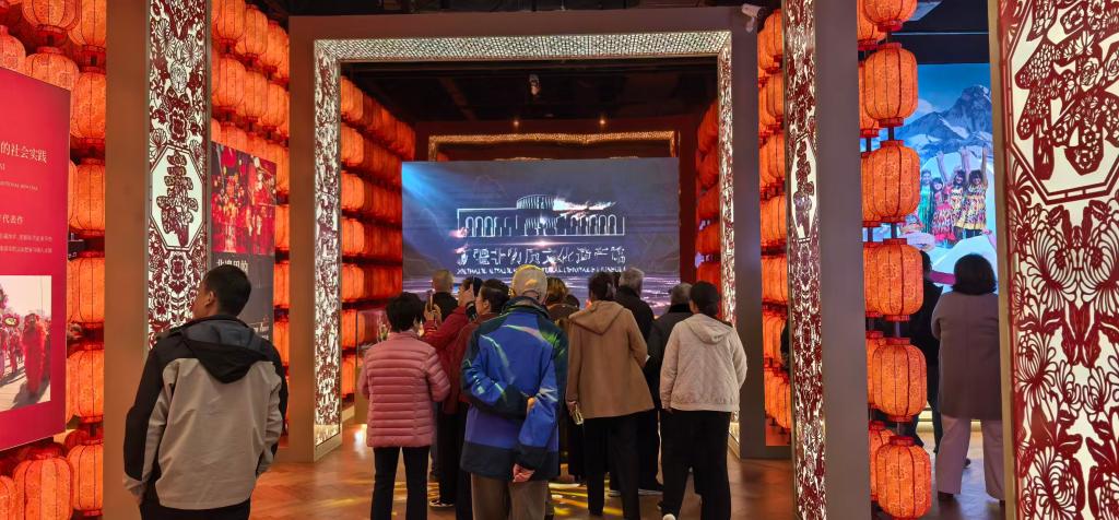 活动最后,离退休老同志们走进全疆首座大型综合性非遗展馆——新疆非物质文化遗产馆,赏丝路霓裳,听万方乐奏,观昆岗韫玉,大家依次参观“节庆中”“生活中”“礼俗中”及“各省区市”非遗陈列单元,近距离感受皮雕、骨雕、赛乃姆、各民族婚礼习俗等丰富多彩的非遗项目,体会指尖技艺背后的文化传承与民族智慧。在观赏英吉沙小刀、十二生肖银饰等融合多民族文化的非遗作品时,老同志们由衷赞叹:“这正是丝绸之路上各族儿女交往交流交融的生动体现!”