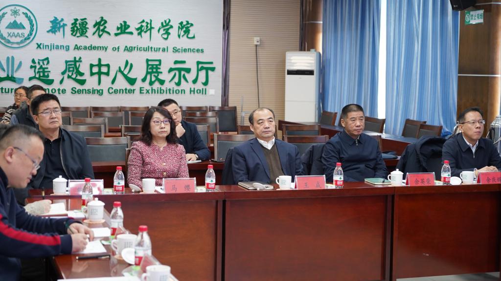 1月7日,自治区科技厅党组书记、副厅长王成,自治区科技厅二级巡视员余英荣等一行6人来院调研座谈。我院党委书记、副院长马缨陪同调研并主持座谈会。院党委副书记、院长余庆辉,院党委委员、副院长戴俊生,办公室、科管处负责同志及生物育种、耕地保护领域相关研究所负责同志和专家代表等20余人参加会议。