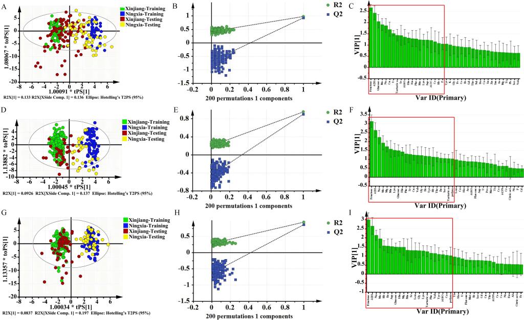 该研究连续3年从新疆精河县和宁夏中宁县等主产区采集了5个枸杞品种的266份样品,分析比较了不同品种、年际、产地来源的枸杞中营养成分、生物活性成分、矿物元素以及稳定同位素等67项指标的含量差异,采用OPLS-DA构建并优化了枸杞产地判别模型,筛选出12项与产地密切相关的特征指纹(果糖、δ2H和葡萄糖、Sr等),使其在不受品种或年份影响的情况下能够有效鉴别精河枸杞和中宁枸杞的产地真实性,对规范市场秩序、保护地理标志品牌及消费者利益等具有十分重要的意义。