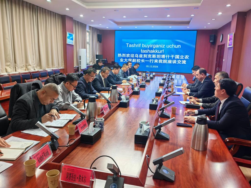 12月5日,乌兹别克斯坦塔什干国立农业大学副校长阿布杜阿齐兹·阿布杜瓦西科夫一行4人来院座谈交流。我院党委委员、副院长阿里甫·艾尔西,院相关部门和研究所负责同志、专家参加会议。