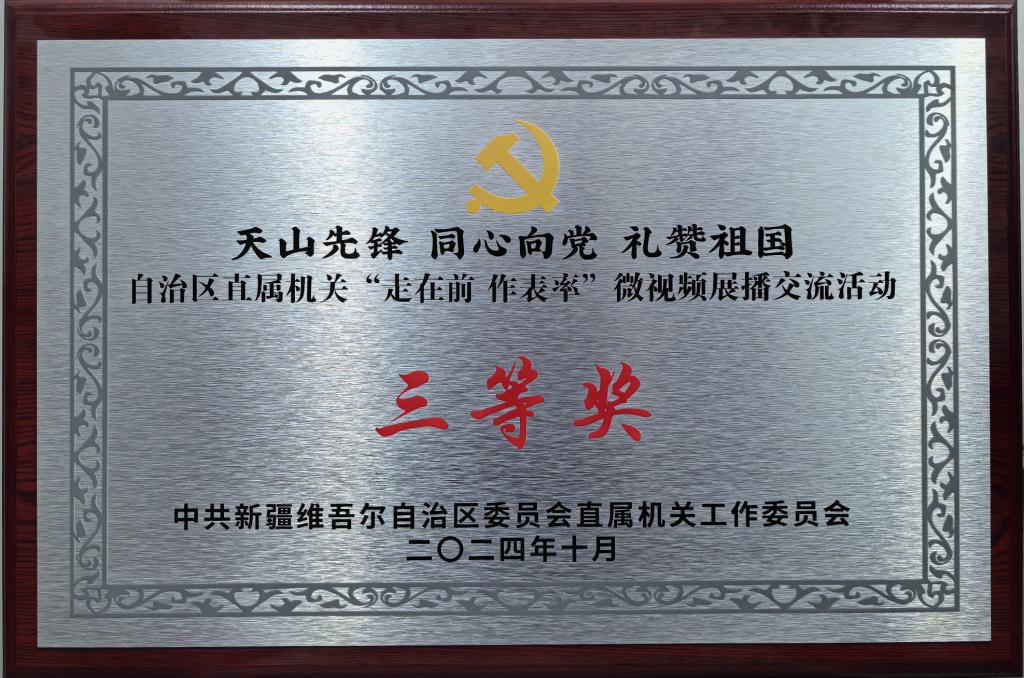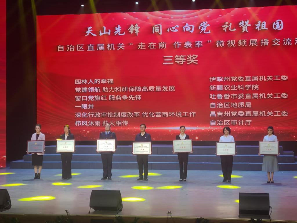 近日,自治区党委直属机关工委组织开展“走在前、作表率”微短视频大赛活动结果揭晓,我院选送的由机关党委牵头、机关第五党支部(行政管理处<后勤服务中心>)精心制作的“党建领航助力科研保障高质量发展”微短视频脱颖而出,荣获大赛三等奖!