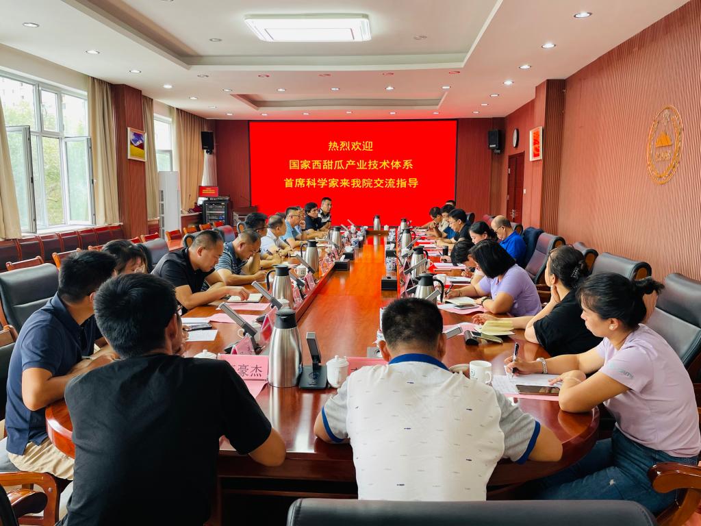 8月23日上午,国家西甜瓜产业体系首席科学家、北京市农林科学院研究员许勇等一行3人来我院交流座谈。我院党委副书记、院长余庆辉出席座谈会,新疆西甜瓜产业技术体系副首席、哈密瓜研究中心副主任张学军、新疆西甜瓜产业技术体系各岗站专家、哈密瓜中心相关科技人员等20余人参加会议。