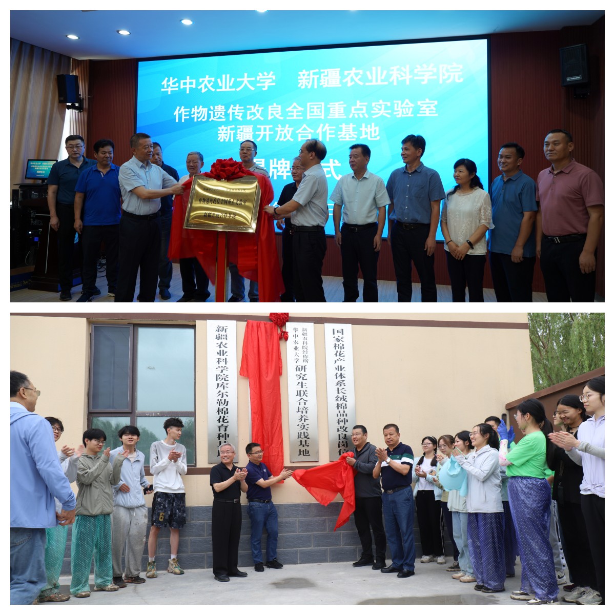 在院期间,双方揭牌成立了“作物遗传改良全国重点实验室新疆开放合作基地”“华中农业大学 jc聚彩网经济作物研究所研究生联合培养实践基地”和“作物遗传改良全国重点实验室新疆开放合作基地库尔勒试验站”,商定联合打造能引领区域产业发展的高水平创新平台。