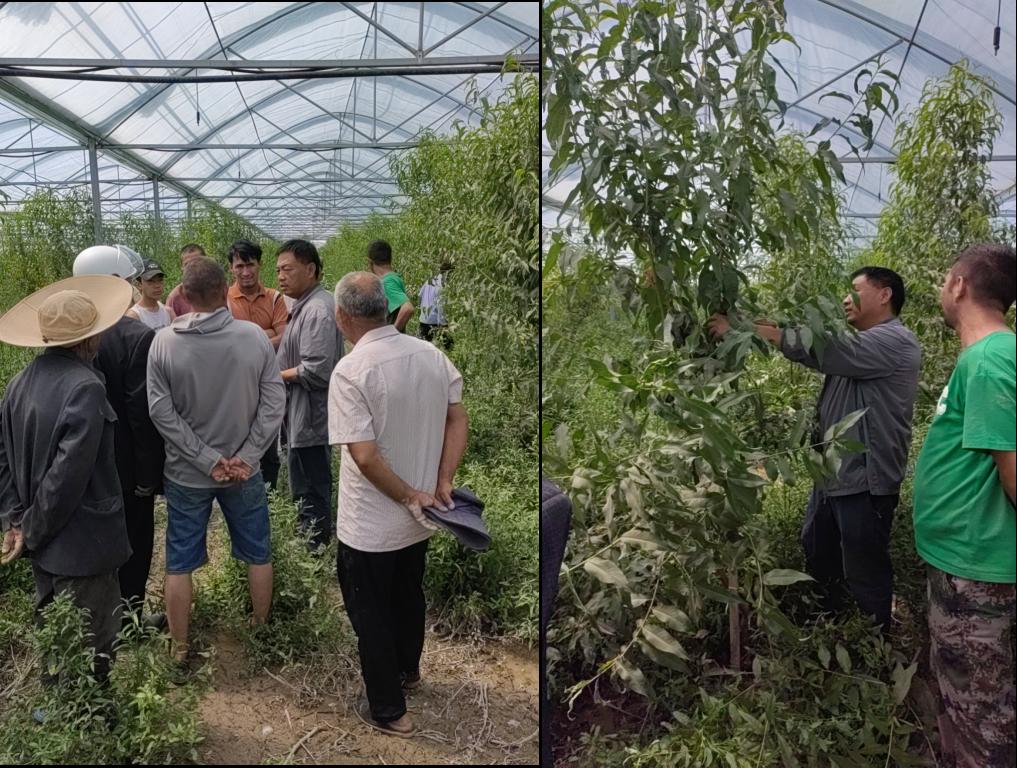 教授技能,助力农户增产。看望亲戚后,结亲干部赵国庆同志前往阿亚克浪喀勒克(7)村桃园,一路走访种植户,细心询问、实地察看当下油蟠桃的长势情况,用通俗易懂的话为农户详细讲解设施油蟠桃整形修剪、病、虫防控等夏季管理技术要点,周围的农户也被吸引至此纷纷提问,交流中解开了种植遇到的难题。