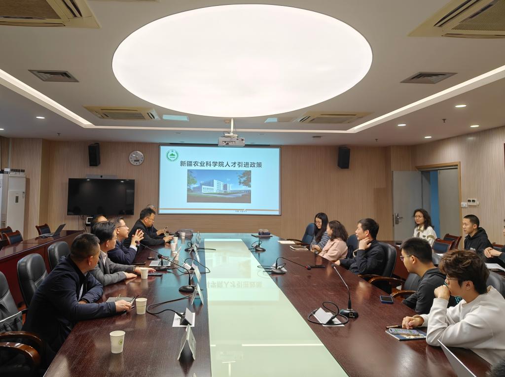 余庆辉介绍了全院概况、近年主要成果、重点工作思路及合作意向。他表示,华中农业大学坚持面向服务国家重大战略需求,在科研创新、人才培养等方面取得了突出成效,院校双方合作关系密切、合作基础良好,希望结合双方的特色与优势,持续深化在科技攻关、人才引育、平台建设、国际合作等方面的务实合作,共同为新疆农业产业高质量发展赋能。