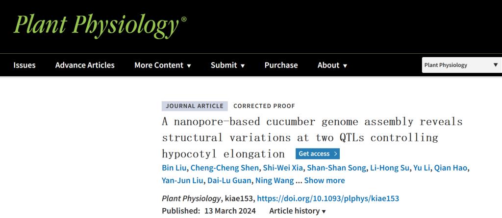 近日,我院科研人员知名期刊《Plant Physiology》在线发表了题为“A nanopore-based cucumber genome assembly reveals structural variations at two QTLs controlling hypocotyl elongation”的研究论文(IF=8.7/Q1)。该研究揭示了染色体结构变异调控黄瓜弱光下下胚轴伸长的分子机制。
