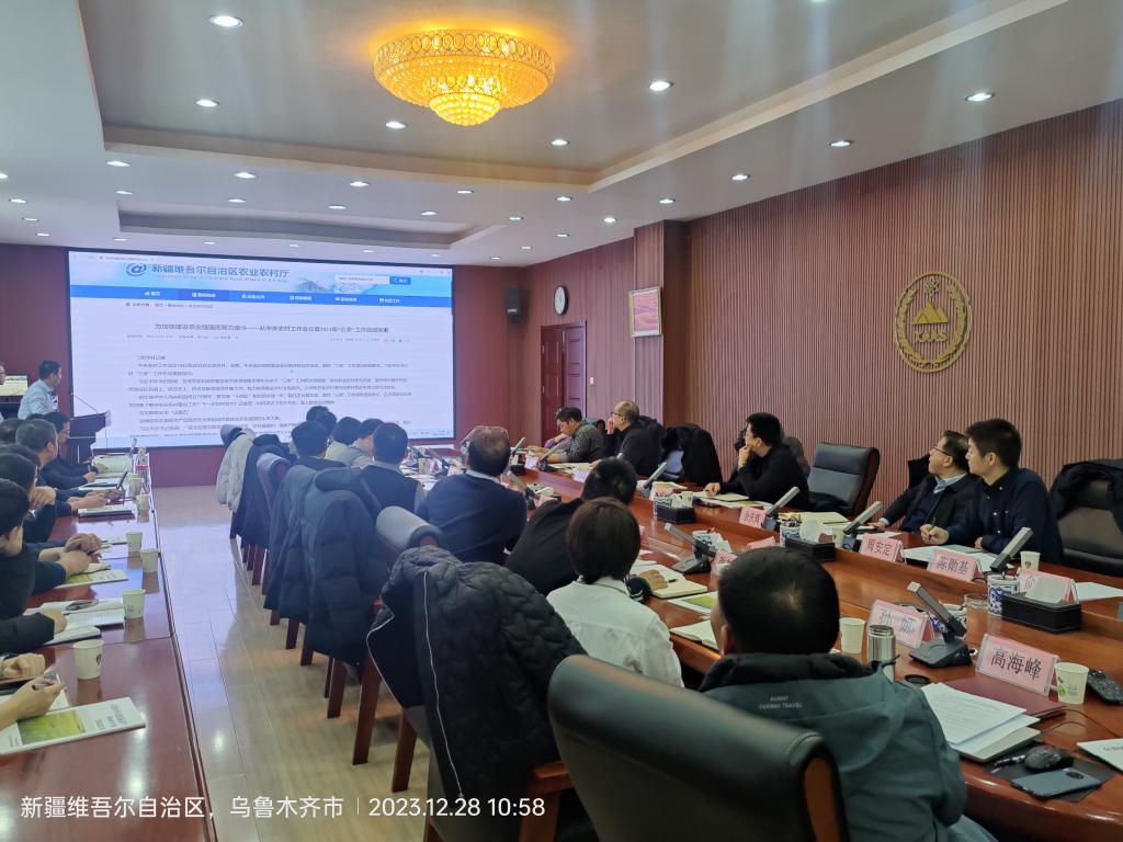 12月28日,新疆小麦产业技术体系2023年工作总结暨2024年工作安排部署会在我院召开。我院党委委员、副院长余庆辉、自治区农业农村厅科技教育处、我院科研管理处和科技成果转化中心负责同志、小麦产业技术体系相关岗位专家、试验站站长及骨干成员等60余人参加会议。