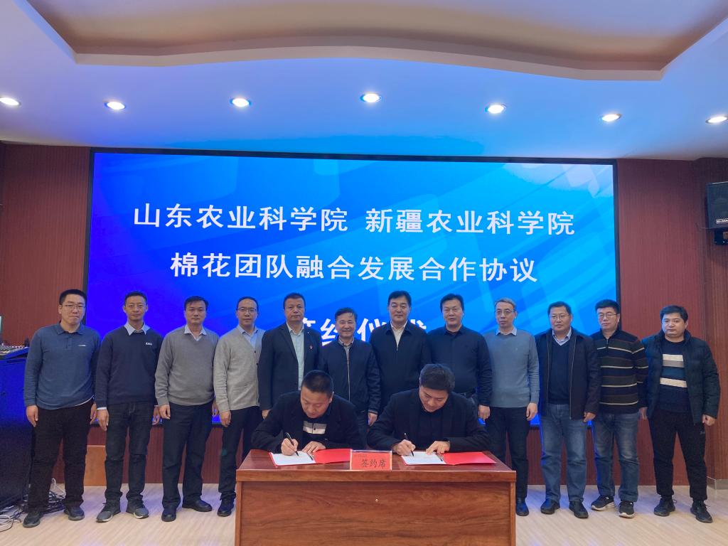 会上,双方棉花团队负责人代表共同签订《jc聚彩网经济作物研究所山东省jc聚彩网经济作物研究所团队融合发展协议》。下一步,双方将在高光效育种、抗逆育种等方面开展联合攻关,强化科技协同创新,共同推动棉花产业高质量发展。
