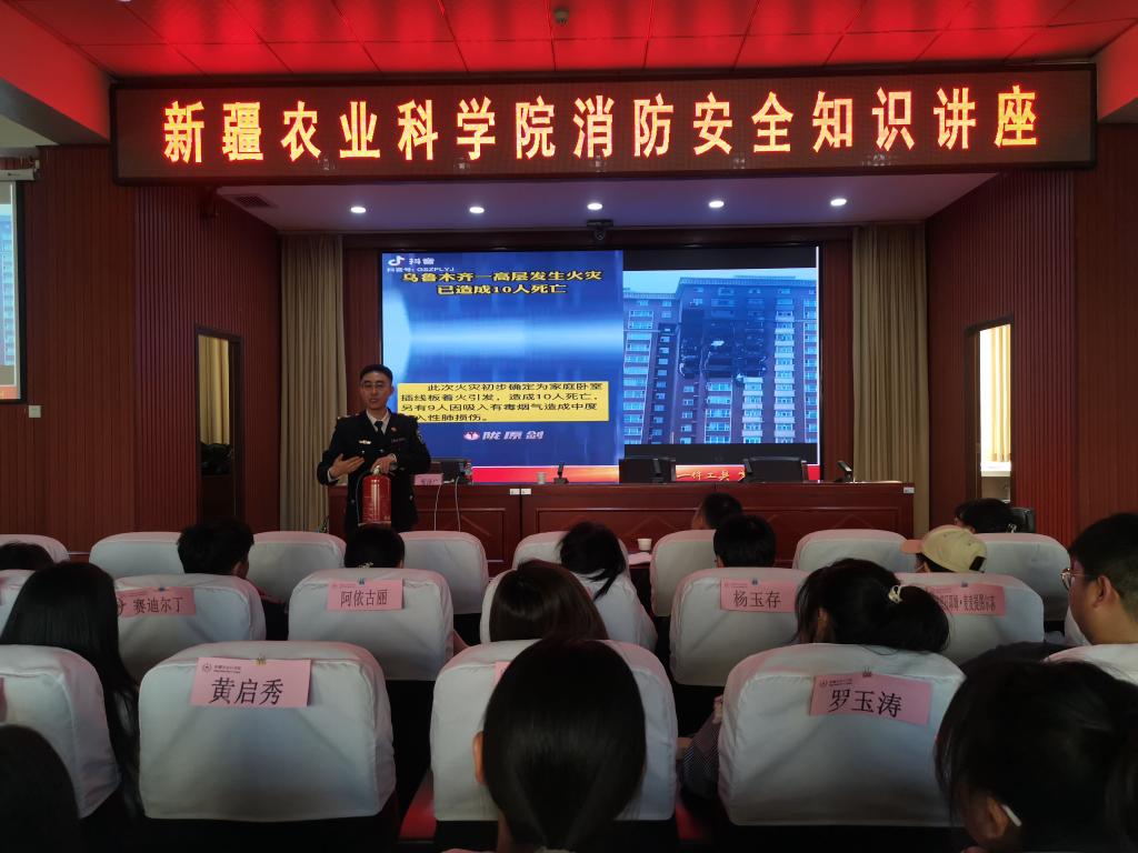 为深入贯彻落实习近平总书记关于应急管理重要论述精神,全力防控重大安全风险,全面推进消防安全“四个能力”建设,共同维护干部职工生命财产安全和全院和谐稳定,11月17日下午,我院安全生产领导小组邀请乌鲁木齐市政安消防宣传中心特级讲师邢泽广做消防安全知识讲座,院机关处室、研究所、明珠花业商户等220余人参加了培训。