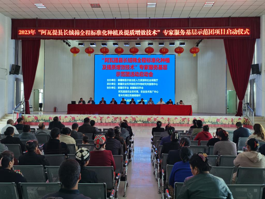 启动仪式上,阿瓦提县政府副县长王智铃、新疆农科院经作所(国棉中心)副主任吐尔逊江•买买提、阿瓦提县人社局党组书记周正仁分别致辞,此次活动旨在发挥专家专业技术优势,深入基层开展长绒棉标准化种植先进实用技术的专题讲座和现场技术培训,培养一批乡土骨干人才,进一步推动南疆长绒棉高质高效发展。