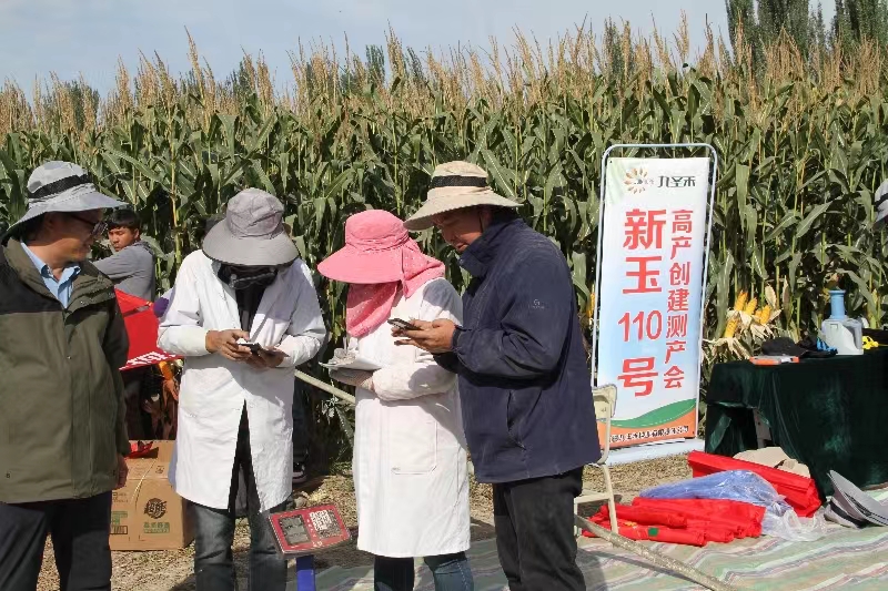 10月6日-7日,由自治区玉米产业技术体系组织邀请来自国家玉米产业技术体系、中国jc聚彩网作物科学研究所、自治区农业技术推广总站、jc聚彩网、新疆农业大学、新疆畜牧科学院、喀什地区农业技术推广中心等单位专家,先后对jc聚彩网粮食作物研究所在喀什地区巴楚县和疏勒县建立的复播玉米高产田进行实收测产,在喀什巴楚县色力布亚镇400亩早熟复播玉米高产示范田,“新玉110号”玉米品种平均亩产667公斤,加上第一茬早熟冬小麦“新冬60号”今年平均亩产648公斤,冬小麦+复播玉米的亩总产量达到1315公斤;在喀什地区疏勒县巴仁乡350亩早熟复播玉米高产示范田,“新农育3226号”玉米品种平均亩产672公斤,加上第一茬早熟冬小麦“新60号”今年平均亩产691公斤,冬小麦+复播玉米的亩总产量达到1363公斤。我院科技人员在南疆同一地块推广的冬小麦+复播玉米两早配套种植模式首次实现“吨三田”,助力南疆地区粮食产能的提升。