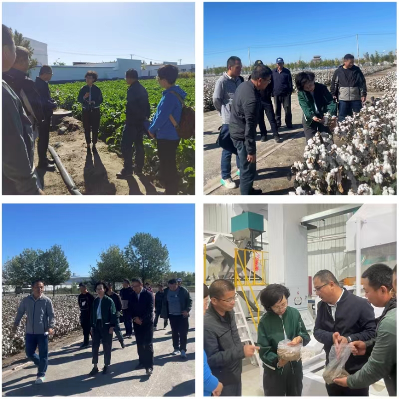 调研组一行现场查看了甜菜、棉花、小麦、玉米、中草药试验示范田及小粒种子丸粒化加工生产线,听取了各试验基地负责人员关于科研任务开展情况、阶段性研究成果和下一步拟开展的工作任务等情况汇报,详细了解了基地建设、科研成果产出及试验站作用发挥等情况。