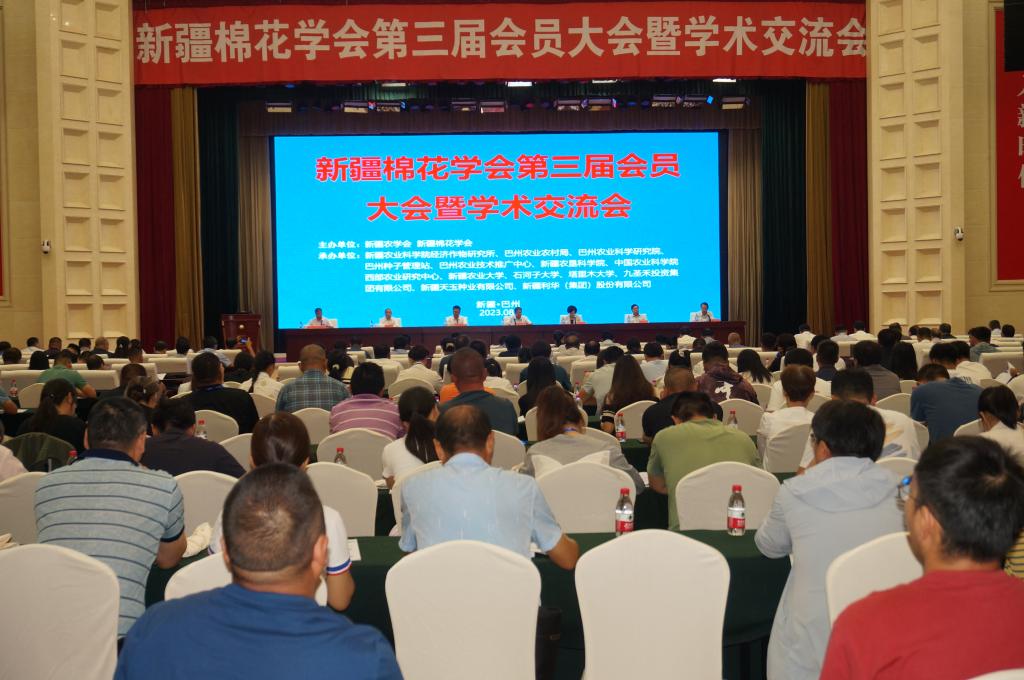近日,新疆棉花学会第三届会员大会暨学术交流会在新疆库尔勒召开。大会由新疆农学会、新疆棉花学会主办,jc聚彩网经济作物研究所等15家单位共同承办。会议由新疆棉花学会第二届理事长、新疆农科院经济作物研究所所长阿里甫·艾尔西同志主持。来自全国科研院所、高校、推广部门和企业等单位代表400余人参加了本次大会。