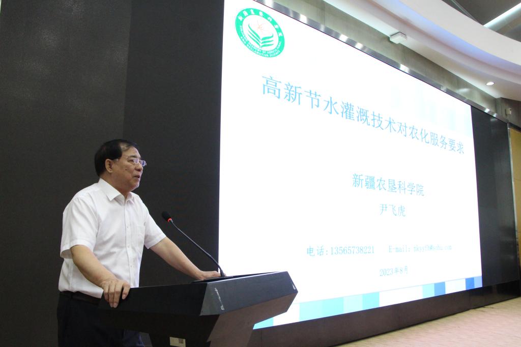 尹飞虎院士以“高新节水灌溉技术对农化服务要求”为题作主题报告,报告从“高新节水灌溉技术发展现状、高新灌溉技术对农化服务要求和高新灌溉技术发展前景与趋势”三个方面进行了深入系统的讲解。他在报告中指出,高新灌溉技术能大幅度节省农业用水,增加作物产量、提高水产比,充分利用耕地,节省农药化肥使用量,减少农田和食品的污染源。他在报告中强调,高新灌溉技术是现代农业的主要支撑技术之一,是实现农业设施化、规模化、自动化、规范化的有效途径,它能使种植业最基本的两项农事活动(灌溉、施肥)实现精准化,能大大提高农业资源产出率和劳动生产率。