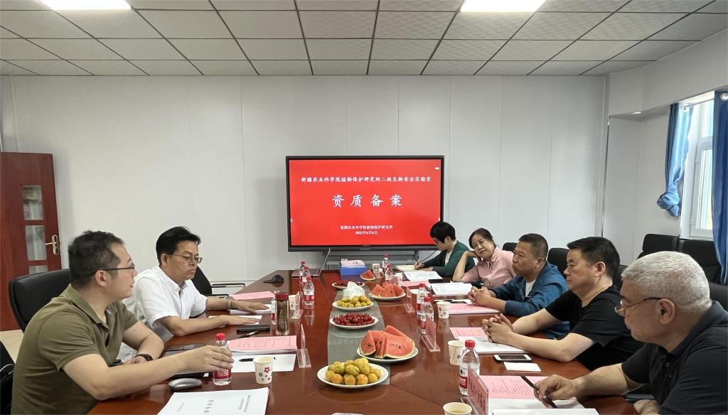 6月6日上午,植保所邀请沙依巴克区农业农村局张挺主任,乌鲁木齐市农业技术推广中心段晓东正高级农艺师,新疆医科大学附属肿瘤医院马秀敏主任,新疆农业大学阿地力·沙塔尔教授,乌鲁木齐海关王翀研究员开展二级生物安全实验室资质备案审核工作。