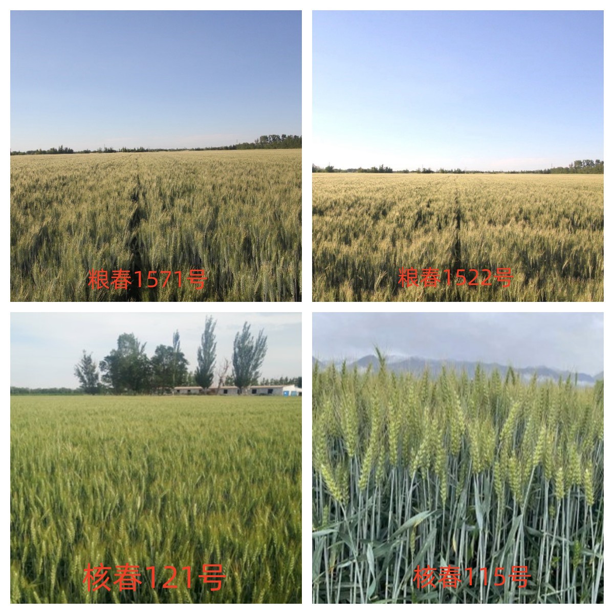 4个春小麦品种“核春115号”“核春121号”“粮春1571号” 和“粮春1522号”均为产业急需的高产、优质、高抗(锈病和白粉病)强筋春小麦品种。其中“核春115号”2022年在哈密市巴里坤县创造了平均亩产724.14公斤的全国冷凉区优质强筋春小麦高产纪录。“核春121号”在昌吉州、阿勒泰地区、伊犁地区、巴州地区进行了大面积示范推广,其高产、优质、耐旱的特性受到种植户与粮食加工企业青睐。