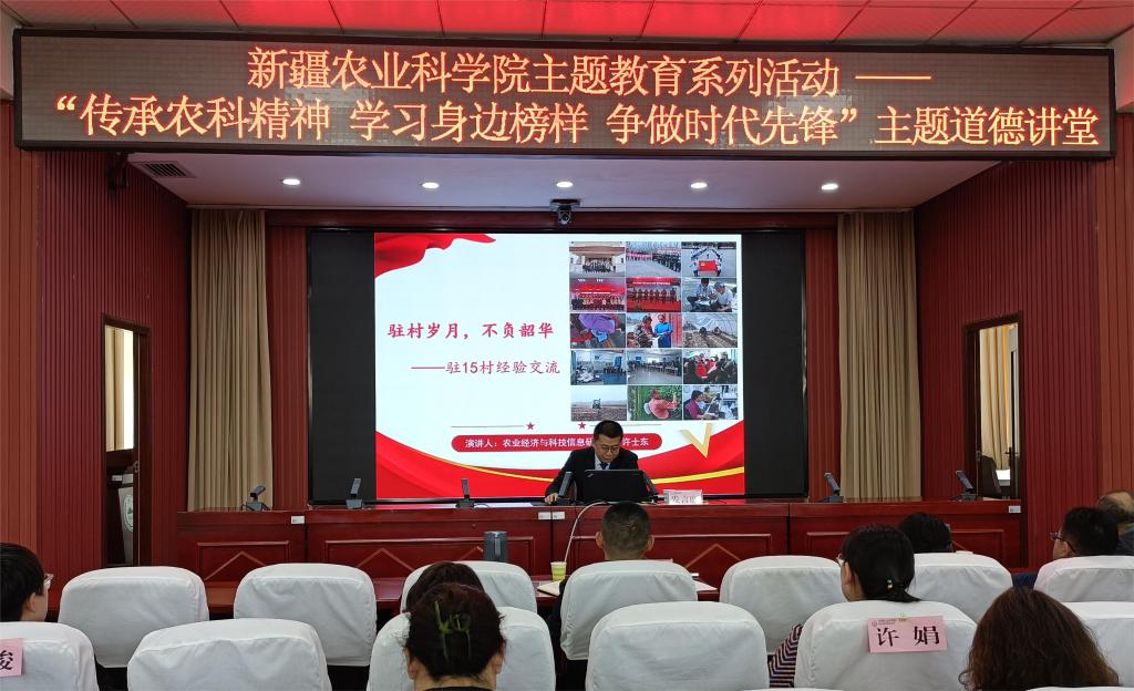 为进一步推进学习贯彻习近平新时代中国特色社会主义思想主题教育走深走实,引领全院党员干部职工坚定跟党走、建功新时代,我院于5月12日上午举办主题教育系列活动—“传承农科精神、学习身边榜样、争做时代先锋”主题道德讲堂,隆重欢迎2022年度驻村干部和2019、2021年度支教老师圆满完成任务凯旋而归。院党委委员、纪委书记丛健出席活动。活动以视频会议形式举行,院机关和研究所党员干部职工代表共220余人在主会场参加活动,院属各研究所、中心、场站400余名职工通过视频分会场同步参加活动。