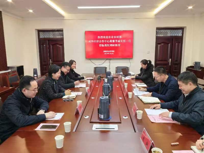 3月2日,农业农村部对外经济合作中心蔺慧芳副主任一行来我院调研,自治区农业农村厅国际合作处处长汪新业陪同调研。院党委委员、副院长王成参加并主持座谈会,科技合作交流处处长马志刚等干部职工参加会议。