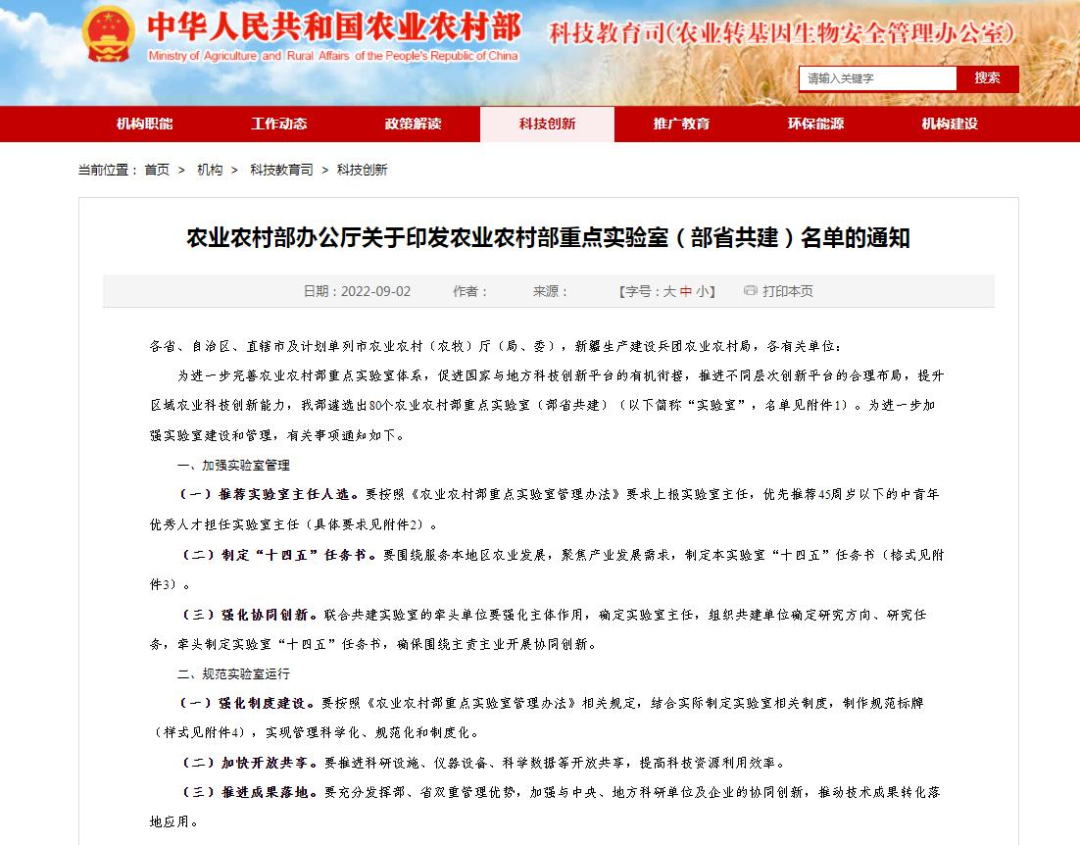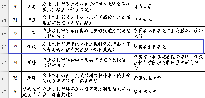 近日,农业农村部发布了《关于印发农业农村部重点实验室(部省共建)名单的通知》,我院申报的“农业农村部荒漠绿洲生态区特色农产品功能营养与健康重点实验室(部省共建)”顺利通过遴选,是我院获批的第6个农业农村部重点实验室。