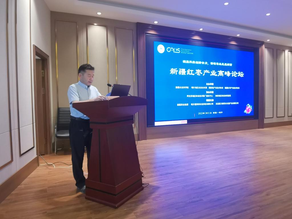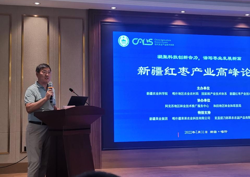 31日,红枣产业发展高峰论坛在喀什举办,我院党委委员、副院长赵德提·阿布都哈德尔,喀什地区行署党组成员郑根昌为论坛致辞。12位枣专家结合对新疆红枣等林果产业的观摩感受作主题报告和交流发言,对新疆红枣产业存在的问题提出意见建议,集智聚力,积极为新疆红枣产业健康可持续发展建言献策。(园艺所 靳娟 李丽莉)