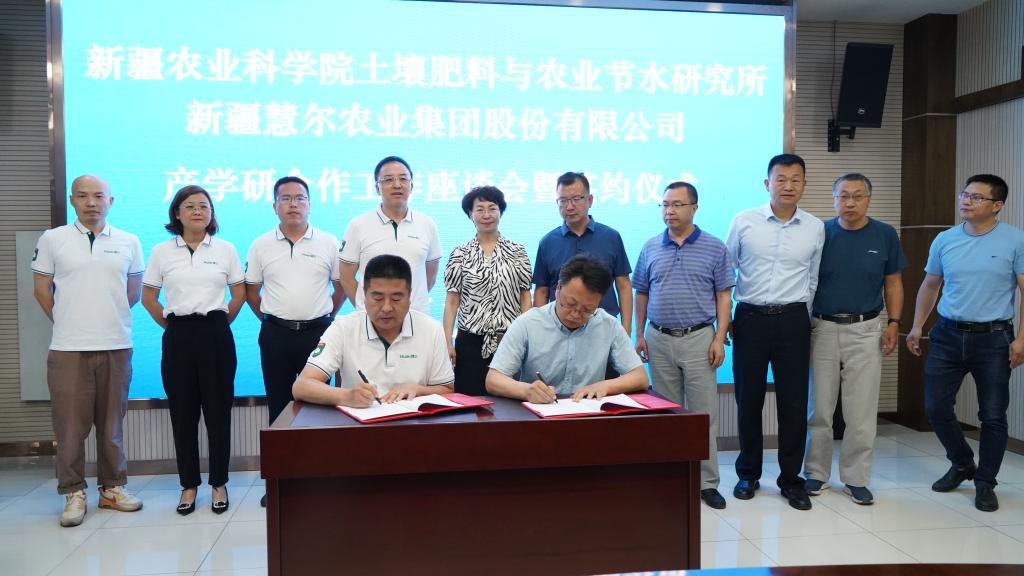 6月9日,我院土肥所与新疆慧尔农业集团股份有限公司召开产学研合作座谈会暨战略合作签约仪式。院党委副书记、院长高培香参加签约仪式。