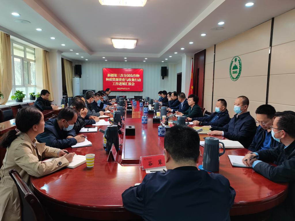 4月21日下午,我院党委书记、副院长卢蜀江主持召开新疆第三次全国农作物种质资源普查与收集行动工作进展报告会,院党委副书记、院长高培香,党委委员、副院长戴健,党委委员、纪委书记丛健,党委委员、副院长赵德提・阿不都哈德尔、马旭东,承担此项工作任务的农作物品种资源研究所专家,种业创新中心负责同志,机关各处室负责同志共20余人参加会议。