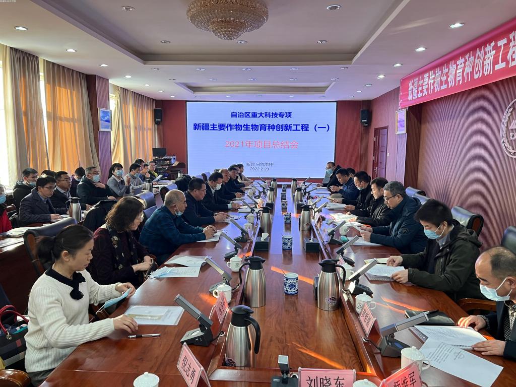 2月23日,由我院经作所主持承担的自治区重大科技专项“新疆主要作物生物育种创新工程(一)”在乌鲁木齐召开2021年度项目总结会暨2022年度工作部署会。院党委委员、副院长赵德提·阿不都哈德尔,科研管理处处长王成及项目各课题主持人、任务负责人、科研骨干等50余人参加会议。会议由经作所书记张鹏忠主持。