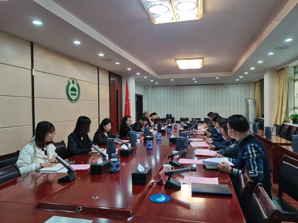 2月22日下午,自治区政协“依法治疆”调研组热依汗·玉素甫副主任一行7人来我院,就落实科技领域国家和自治区相关法律法规政策等问题进行专题调研。院党委委员、副院长赵德提·阿不都哈德尔主持会议。