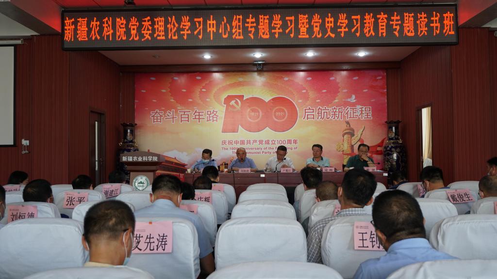 为深入开展党史学习教育,深刻领会习近平总书记在中国共产党成立100周年庆祝大会上的重要讲话精神,我院于8月12日至13日开展为期两天的党委理论中心组专题学习暨党史学习教育专题读书班,开班仪式由院党委书记、副院长卢蜀江主持。院党委委员、副院长刘俊浩,院党委委员、副院长戴健,院党委委员、纪委书记丛健,院党委委员、副院长赵德提·阿不都哈德尔,全院干部职工400余人在主会场和分会场集中学习,刘俊浩、丛健同志分别传达学习习近平总书记在西藏考察期间重要讲话精神和学习贯彻要求。