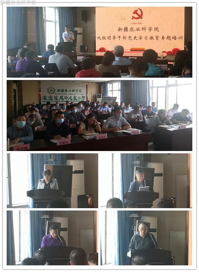 在为期一周的专题培训中,我院坚持把学习习近平新时代中国特色社会主义思想贯穿始终,把学习党史与学习贯彻第三次中央新疆工作座谈会精神相结合,聚焦党史、新中国史、改革开放史和社会主义发展史,以“集中培训+个人自学+研讨交流”的方式,组织学习了《全面理解、深刻把握习近平新时代中国特色社会主义思想》《新民主主义革命时期党的历史发展与启示》《第三次中央新疆工作座谈会精神新时代党的治疆方略》等11个专题的视频教学课件。为进一步巩固学习成果,提高培训质量和效果,切实做到学史明理、学史增信、学史崇德、学史力行,学员们还紧紧围绕学习内容结合工作实际开展专题研讨。科技成果转化中心主任冯耀祖、园艺所支部书记陆胜祖、质标所支部书记王新江、吐鲁番所副所长任红松、机关党委副书记黄娟、离退休职工服务管理中心副主任冯蕾、核生所副所长陈勋基、农机化所副所长史慧锋等8名学员代表,立足农业科研事业,结合乡村振兴、机关党的建设、基层党组织建设、离退休管理服务等中心业务工作做专题发言,切实增强了培训班的针对性和实效性。