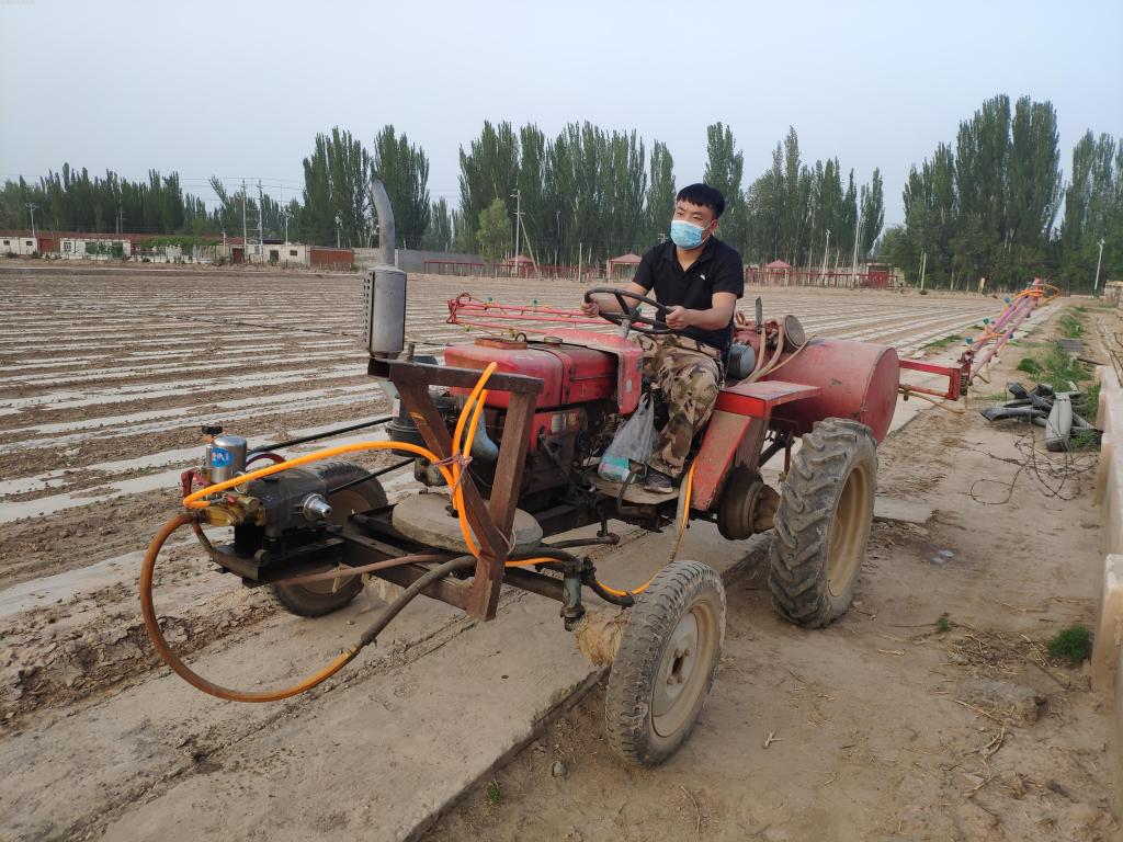5月5日,经作所棉栽培课题组在库车陆地棉试验站开展出苗虫害预防工作。