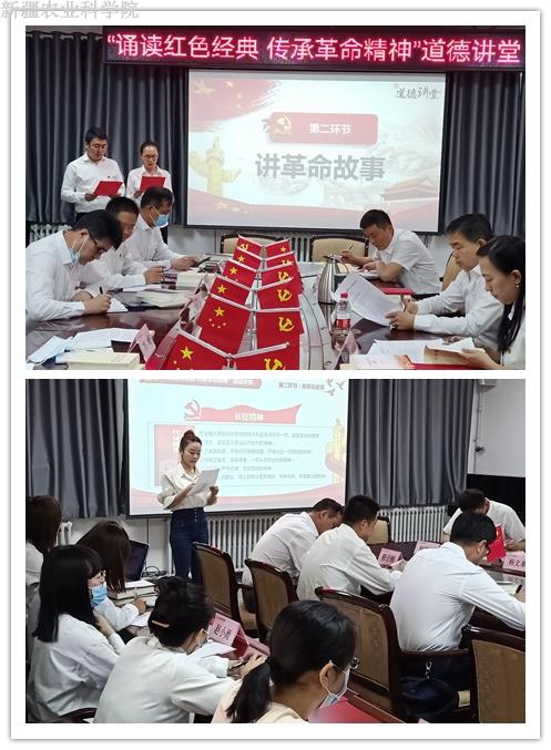 此次道德讲堂共分为唱红色歌曲、讲革命故事、观党史展、诵红色经典、谈感悟、送吉祥六个环节。活动在慷慨激昂的《没有共产党就没有新中国》歌声中拉开帷幕,11名青年党员带领全体干部职工深入细致地回顾了五四精神、延安精神、红船精神、长征精神、井冈山精神、西柏坡精神等11种革命精神,重温我党浴血奋战史、艰苦创业史和改革创新史。中心副主任谢建江领诵《七律·长征》,在诗歌中重温那段红色历史,踏着革命先驱不朽的足迹重走长征路。