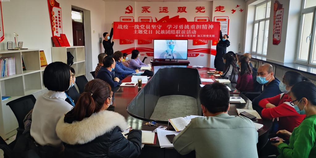 为进一步发挥党组织战斗堡垒和党员先锋模范作用,激发青年理论学习小组活力,机关第三党支部和加工所党支部联合开展了以“战疫一线党员坚守,学习勇挑重担精神”为主题的主题党日和民族团结联谊活动。