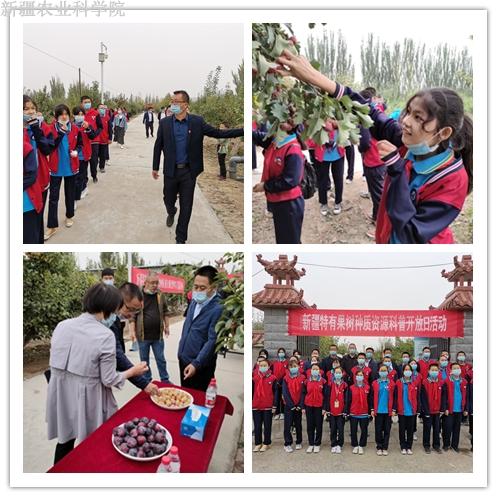 为普及作物种质资源保护与利用知识,提高公众对种质资源的保护意识,9月20日,轮台果树资源圃与轮台县农业农村局、林草局、教科局等5家单位联合举办了“2020年中国农民丰收节‘种质资源科普开放日’系列活动——新疆特有果树种质资源科普开放日”。轮台县相关单位领导及专家,企业、合作社负责人,轮台县第二中学师生、农户、种植大户等200余人参加,国家果树种质新疆特有果树及砧木(轮台)圃在活动当天向社会全天开放。