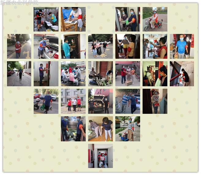 在此次战“疫”中,各单位广大党员干部积极响应院党委的号召,积极踊跃加入到志愿者的队伍中去,以实际行动践行共产党人的初心使命,展现农科风彩。科管处林萍同志成了居民口中的“飞毛腿”,刚做完手术大病初愈的肖丽同志主动投身一线成了群众身边的“贴心人”。离退休中心老骥伏枥志在千里,多名退休职工主动担任志愿者服务工作。经作所年轻党员、博士石必显“甘当志愿者”,全力保障28号楼2单元60余户家庭的垃圾回收和物资运送工作。土肥所“一马当先”的马雪琴研究员主动承担了9号楼的垃圾清运、信息核查、体温测量、购买生活物资等工作。植保所不但积极组织参加志愿者活动,还将实验室储备的525双橡胶手套、13300双一次性PE手套捐赠给社区,受到社区的高度赞许。微生物所张志东、孙建、史应武、朱静、王玮、艾尼江、詹发强、王宁8名党员同志主动报名参加楼栋志愿服务,“八勇士”积极、认真、耐心、周到的服务,赢得了楼栋住户的广泛赞誉。农机所领导班子成员坚持每天在岗值守,6名党员职工积极奋战抗疫一线,保障农机所小区居民的正常生活。质标所组织院内外职工参加社区志愿者活动,朱靖蓉研究员是头屯河区高铁片区绿谷社区的志愿者,辛勤工作,彰显农科人的风采。