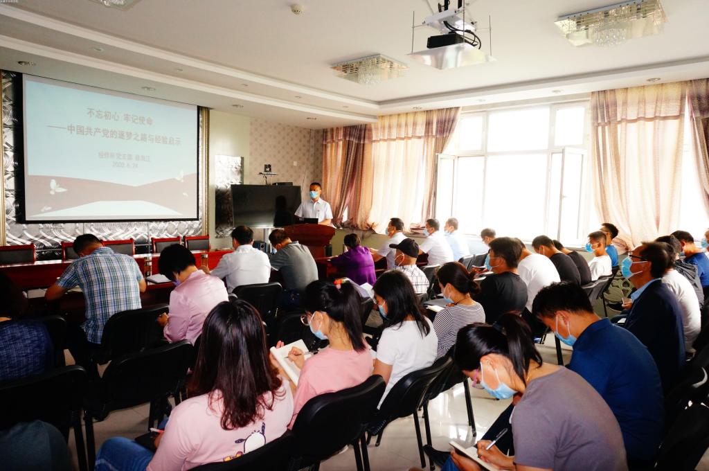 经作所副所长、党支部组织委员徐海江以《不忘初心、牢记使命——中国共产党的逐梦之路与经验启示》为题讲授党课。党课围绕中国共产党的奋斗历程展开,希望干部职工将学习领悟党史、新中国史作为牢记党的初心和使命的重要途径,做到知史爱党、知史爱国。师维军、马君同志结合党课和棉花资源科研工作发表了心得体会。杨延龙同志分享了科研文献《一种新育种方法Native Traits Recovery(原生性状恢复)技术介绍》。