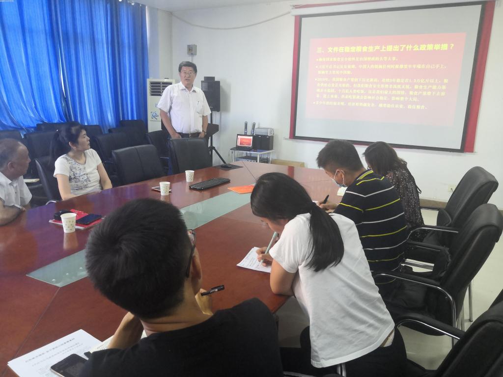 粮作所党支部书记吴新元以《聚焦2020年中央一号文件——加强党建引领,推动乡村振兴》为题讲授微党课。吴新元结合科研业务深入解析中央一号文件的意义和重点任务,希望全体党员积极践行习近平总书记“给农业插上科技的翅膀”重要指示精神,扎根基层解决生产实际问题,把论文写在大地上,把红旗插在田野里,充分发挥科技专家的科技示范和党员同志的先锋模范作用。